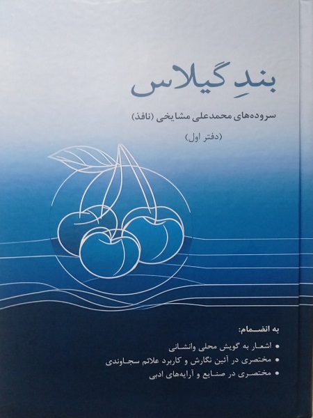 کتاب بند گیلاس اثر محمدعلی مشایخی شامل مجموعه ای از اشعار است که توسط نشر مشاهیر هنر منتشر گردیده است. این مجموعه شامل 218 صفحه در قطع رقعی، همراه با جلد نفیس چاپ شده است. برخی از ویژگی های این کتاب شامل موارد زیر است:
